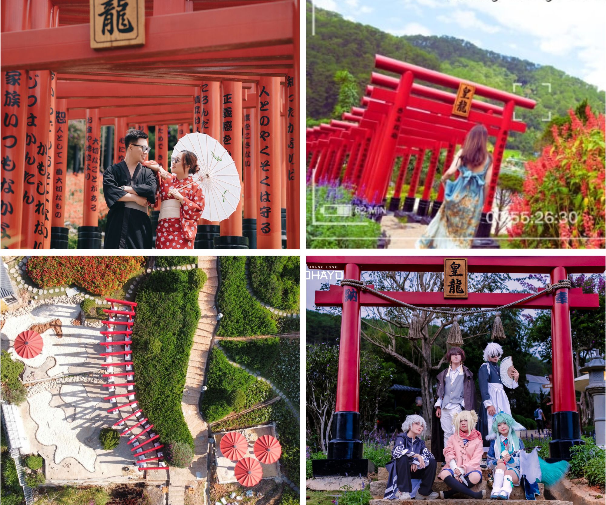 - Hoàng Long Ohayo: Là một nơi có không gian mang đậm phong cách Nhật Bản chắc sẽ là một thiên đường dành cho các tín đồ yêu thích văn hóa của đất nước này mà không cần phải cất công đến tận xứ sở “Mặt Trời Mọc” xa xôi. Ngoài ra, quý khách còn được chiêm ngưỡng những loài hoa nổi tiếng của Đà Lạt, hồ cá Koi đặt tiêu chuẩn Nhật Bản, hàng loạt tiểu cảnh mang đậm sắc màu Nhật Bản như hàng cổng Tori, khu thác nước, khu phố Nhật, con đường tre,… Tất cả sẽ tạo nên một không gian thư thái hoà quyện với thiên nhiên. (Đã bao gồm vé tham quan)